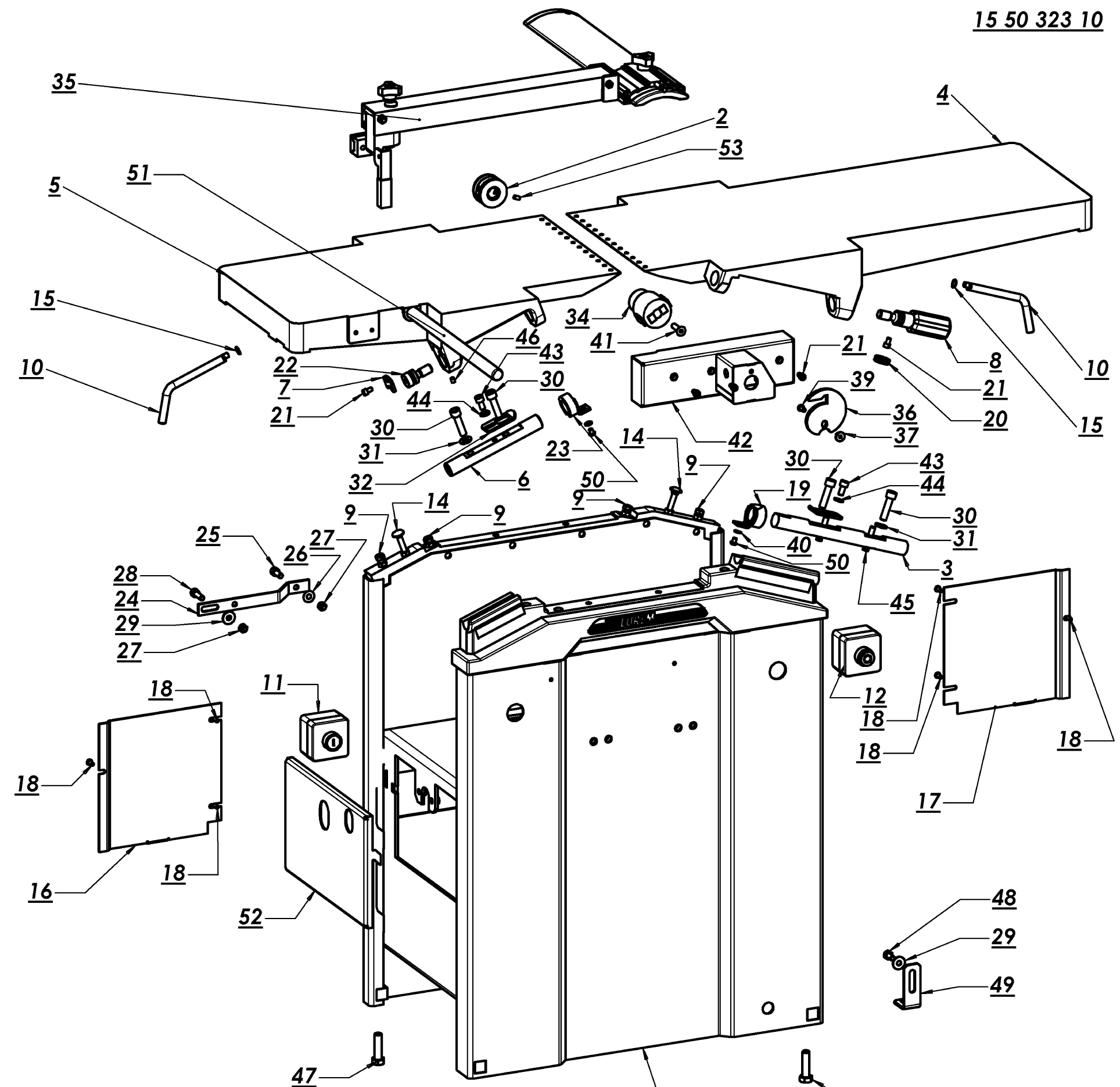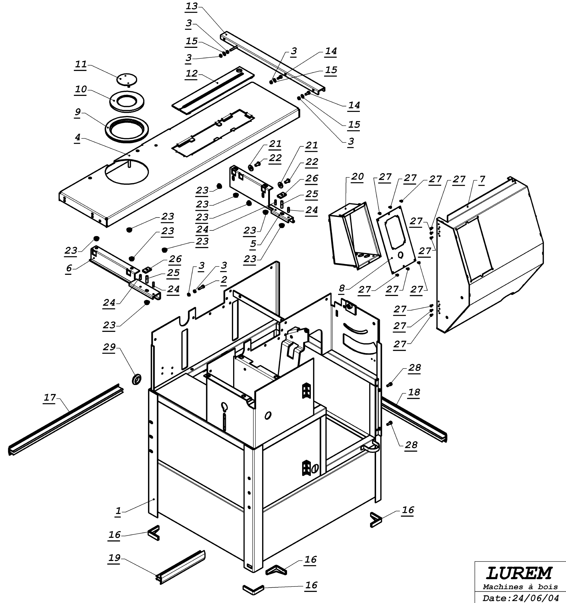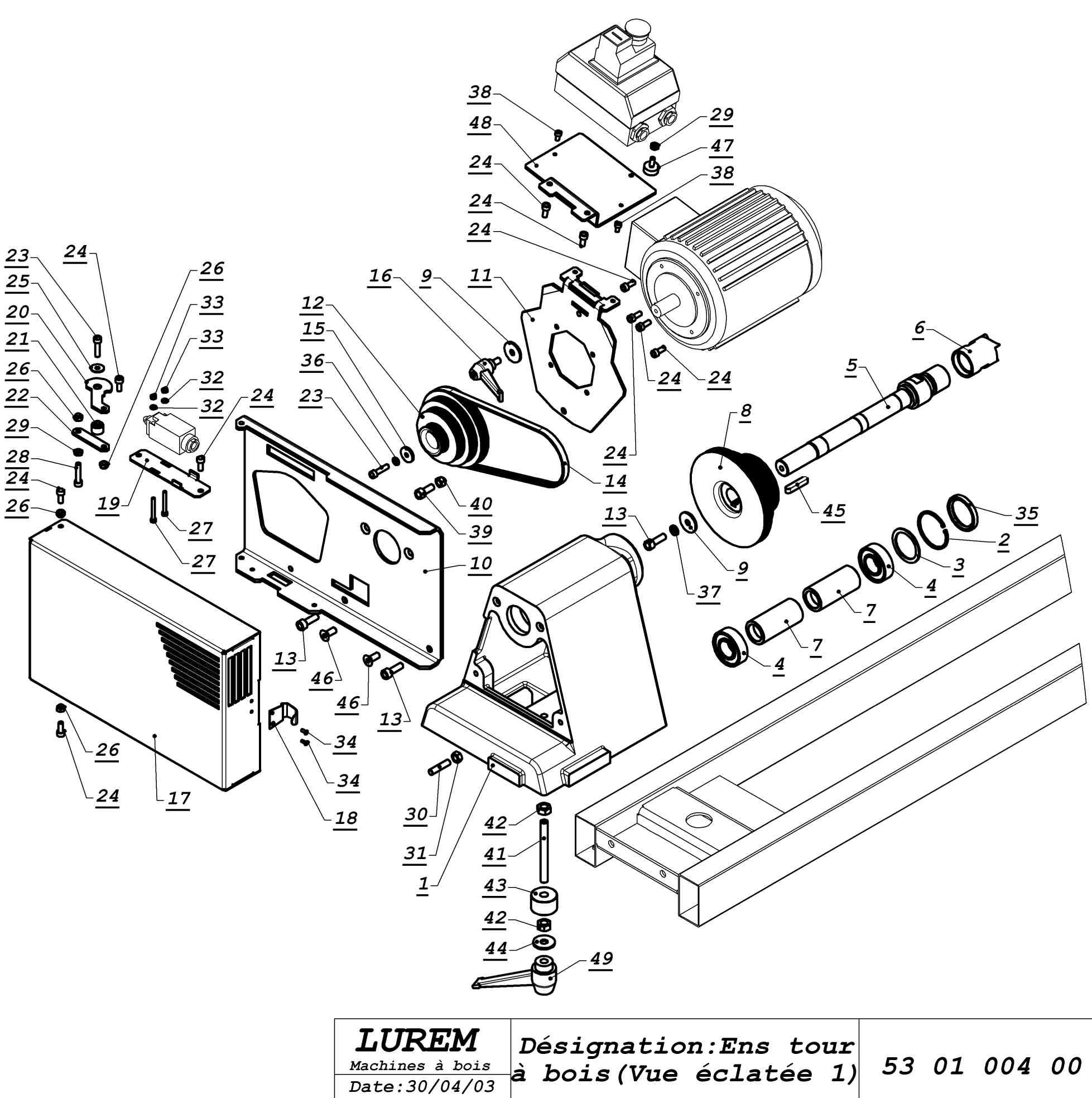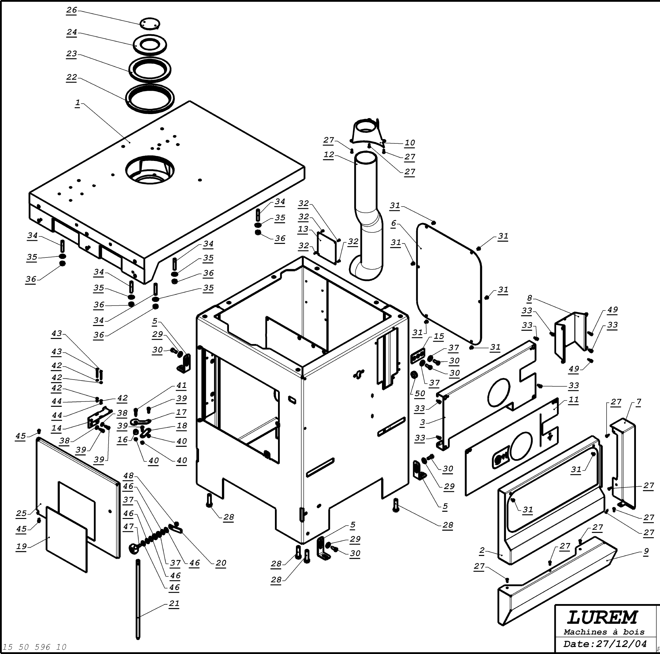 Exploded views with parts lists for the LUREM TB1250. Essential documentation for anyone wishing to install, maintain and use this machine efficiently and safely.